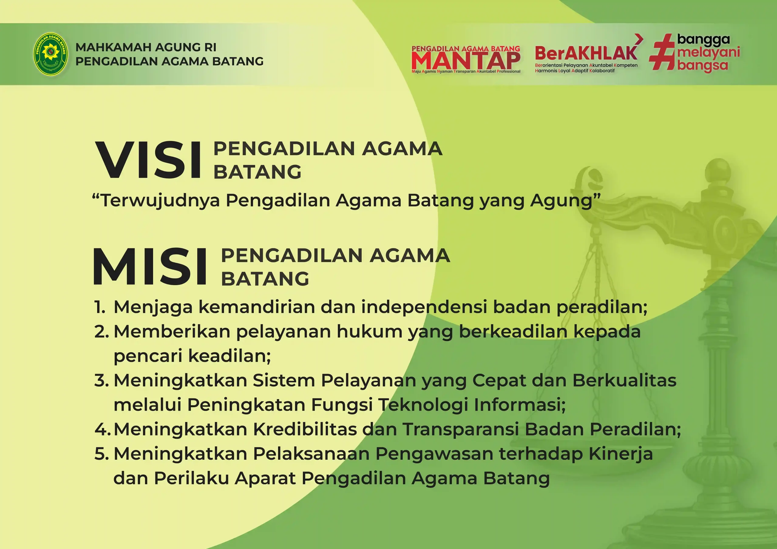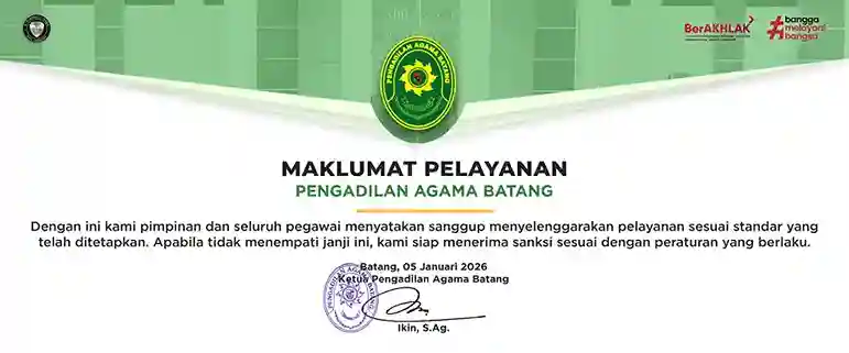 Dengan ini kami pimpinan dan seluruh pegawai menyatakan sanggup menyelenggarakan pelayanan sesuai standar pelayanan yang telah ditetapkan, apabila tidak menepati janji ini, kami siap menerima sanksi sesuai peraturan yang berlaku